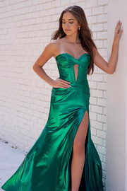 Mermaid Sweetheart Green Satin Long formal dress evening gowns Prom Dresses with Slit