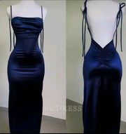 Sheath Spaghetti Straps Navy Blue Satin formal dresses Bridesmaid Dresses evening gown Prom Dress