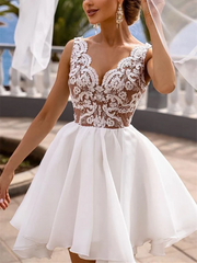 A Line V Neck Lace Short Prom Dresses Formal Graduation Homecoming Dresses