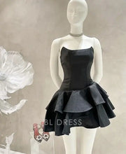 A-line Elegant Black Strapless Short Homecoming Dress formal dresses Bridesmaid Dresses evening gown Prom Dress