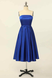 A-line Fold Strapless Lace-Up Back Satin Mini Homecoming Dress
