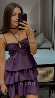A Line Layered Purple Short Homecoming Dress formal dresses Bridesmaid Dresses evening gown Prom Dress