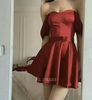 A Line Off The Shoulder Burgundy Short formal dresses Homecoming Dresses Bridesmaid Dresses evening gown Prom Dress