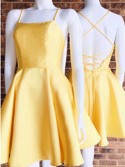 A-line Spaghetti Straps Short Satin Prom Homecoming Dress