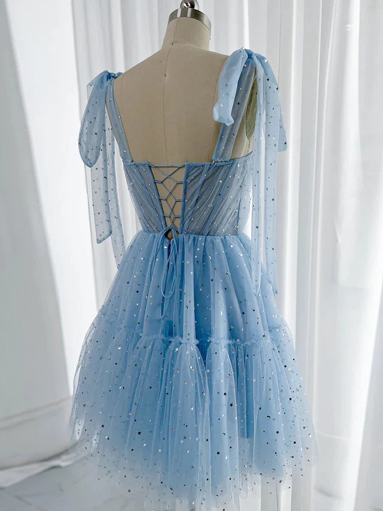 A Line Sweetheart Neck Tulle Short Prom Dresses