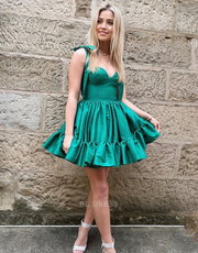 A-Line Sweetheart Tie Straps Short Satin Green Homecoming Dress formal dresses Bridesmaid Dresses evening gown Prom Dress