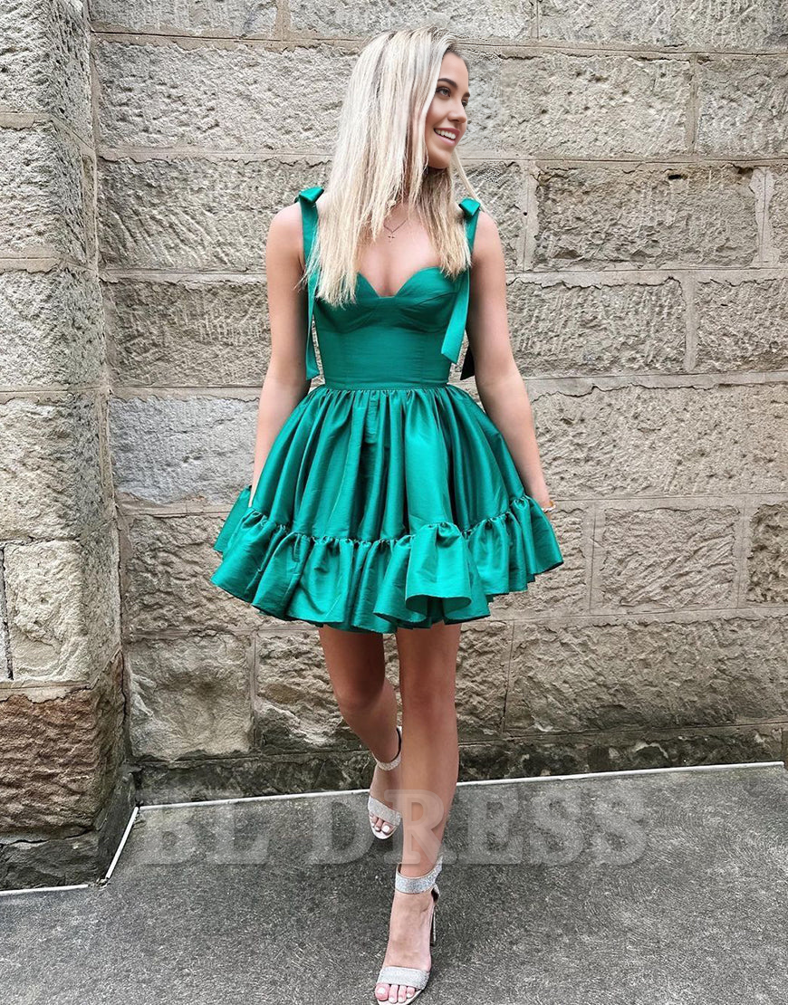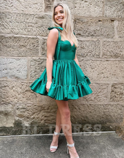 A-Line Tie Straps Short Satin Green formal dresses Bridesmaid Dresses evening gown Prom Dress Homecoming Dress