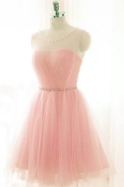 A-Line Tulle Short Prom Dresses Homecoming Dresses - Pink / US 2 / UK 6 / EU 32