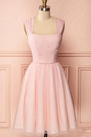 A-Line Tulle Straps Pleats Beading Homecoming Dress