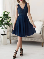 A-line V Neck Chiffon Lace Short Prom Dress Homecoming Dress