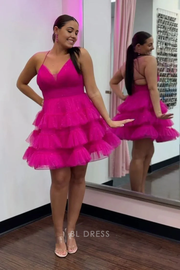 A Line V-Neck Layered Homecoming Dresses Short formal dresses Bridesmaid Dresses evening gown Prom Dress