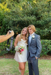 A Line V-Neck Ruffle White Short Homecoming Dress formal dresses Bridesmaid Dresses evening gown Prom Dress - US 2 / UK 6 / EU 32