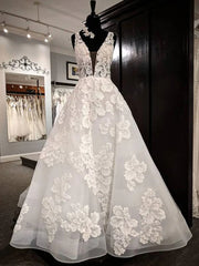 A-line V Neck Tulle Applique Long Prom Dress Formal Evening Dress