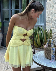 Chic Ruched trapless A-line Mini Dress Homecoming Dress