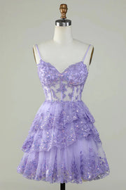 Glitter Lace Corset Ruffle Tiered Homecoming Dress - Lavender / US 2 / UK 6 / EU 32