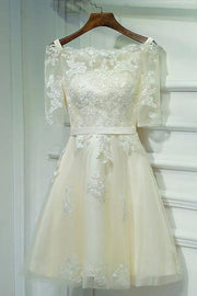 Half Sleeve Off Shoulder Lace Up Appliques Short Homecoming Dresses