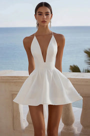 Sexy V Neck A Line White Sleeveless Graduation Dress Homecoming Dresses