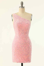 Sheath One Shoulder Strap Back Sequins Mini Homecoming Dress