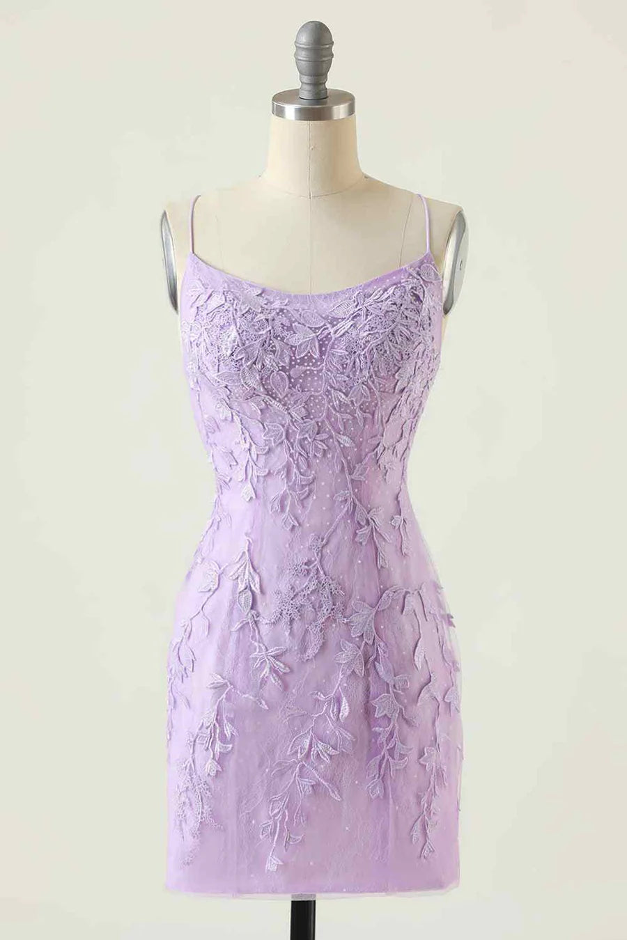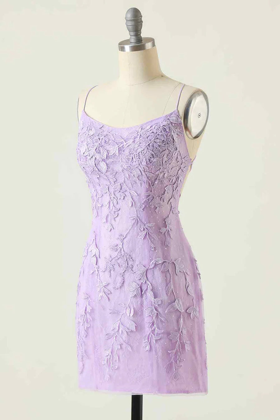 Sheath Scoop Neck Lace-up Back Applique Homecoming Dress - US 2 / UK 6 / EU 32