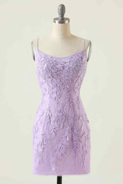 Sheath Scoop Neck Lace-up Back Applique Homecoming Dress