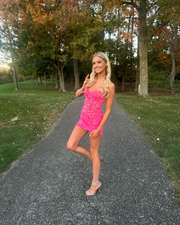 Sheath Sweetheart Pink Short Lace Homecoming Dresses formal dresses Bridesmaid Dresses evening gown Prom Dress - US 2 / UK 6 / EU 32