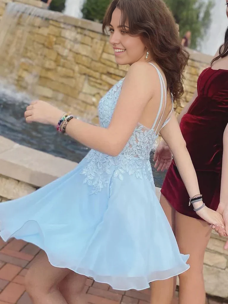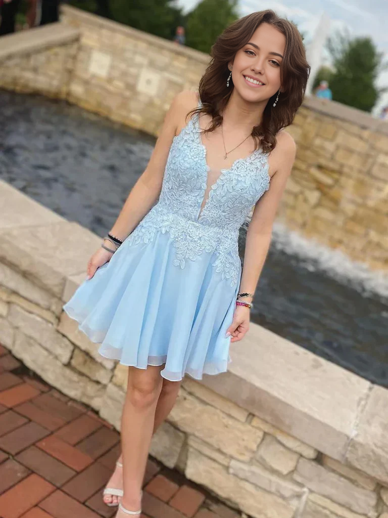 Short V Neck Lace Prom Dresses Formal Evening Homecoming Dresses - US 2 / UK 6 / EU 32