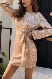 Sparkling Glitter Sequined Tie Waist Slim Backless Mini Dress Homecoming Dresses