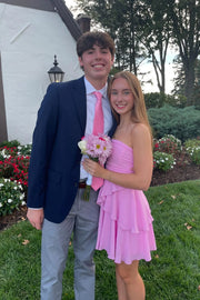 Strapless Pink Ruffled Tiered A-line Short Dress
