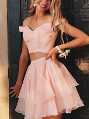 Two Pieces Off Shoulder Short Prom Dresses Short Graduation Homecoming Dresses