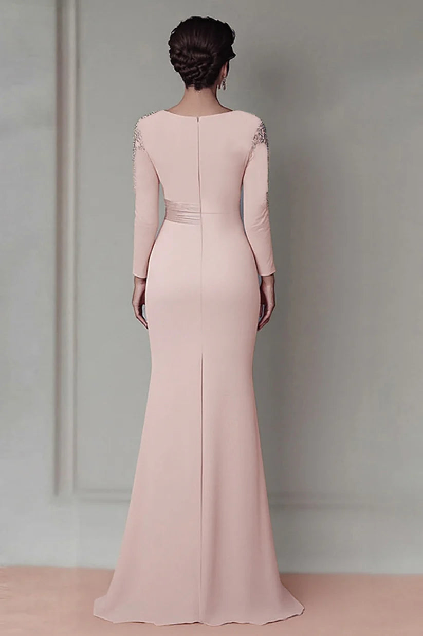 Blush Lace Sheath Mother Of The Bride Dress with Long Sleeves