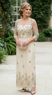Champagne Sheath Lace Beaded Crsytals Appliques Mother of Bride/Groom Dress Evening Formal Gowns