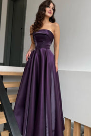 Glamorous Purple Strapless Sleeveless A-Line Prom Dresses Long Lace-Up Back With Pleats - US 2 / UK 6 / EU 32