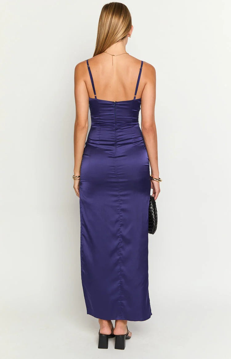 Sleek Slip Sweetheart Spaghetti Strap Zipper Back Floor Length Prom Dress - Navy / US 2 / UK 6 / EU 32