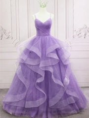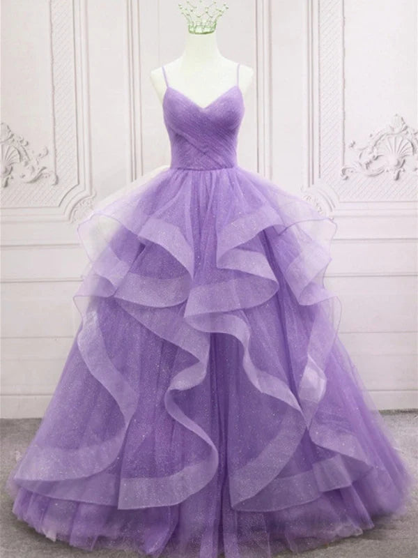 V Neck Open Back Tulle Long Prom Dresses - US 2 / UK 6 / EU 32