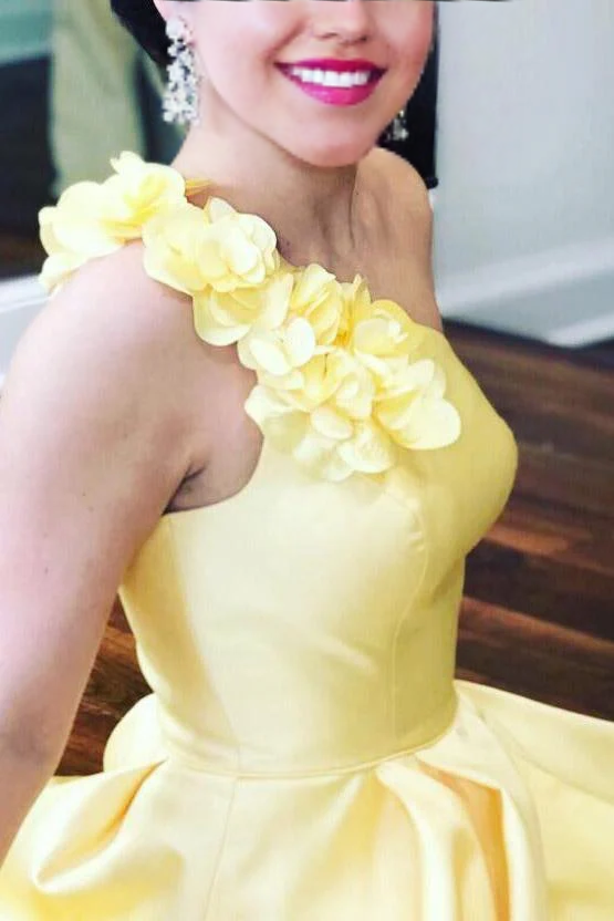 A-Line One Shoulder Flower Blue Satin Long Prom Dress Formal Dress - US 2 / UK 6 / EU 32 / As picture1