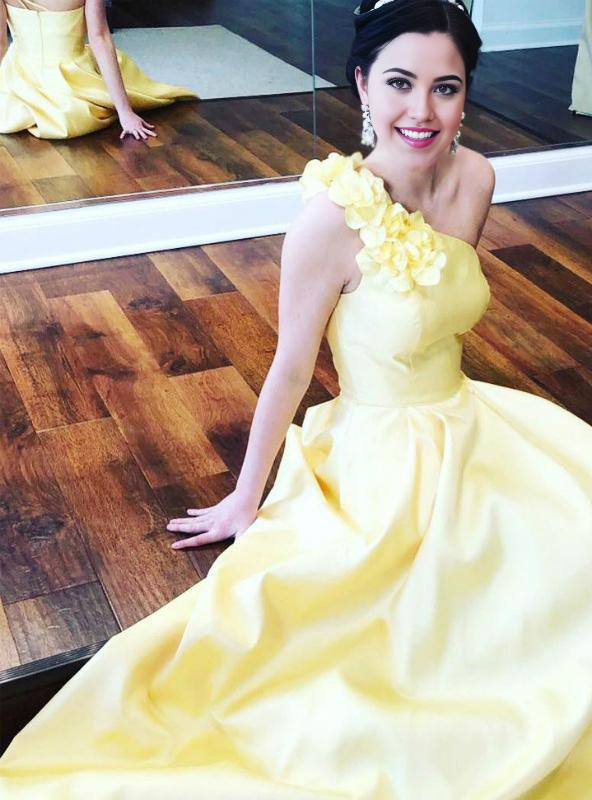 A-Line One Shoulder Flower Blue Satin Long Prom Dress Formal Dress