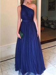 A-line One Shoulder Tulle Prom Dress Bridesmaid Dress