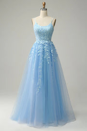 A-line Scoop Neckline Embroidered Tulle Long Prom Dress
