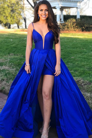 A-line Spaghetti Straps Satin Long Prom Dresses With Slit