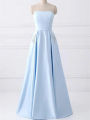 A-line Strapless Simple Long Prom Dresses Formal Evening Dresses