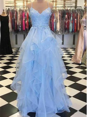 A-line Sweetheart Neck Tulle Lace Long Prom Dress Evening Dress