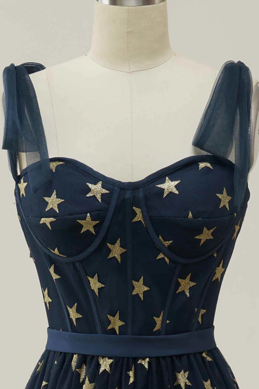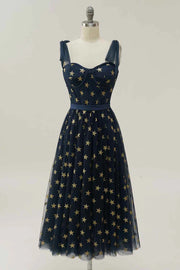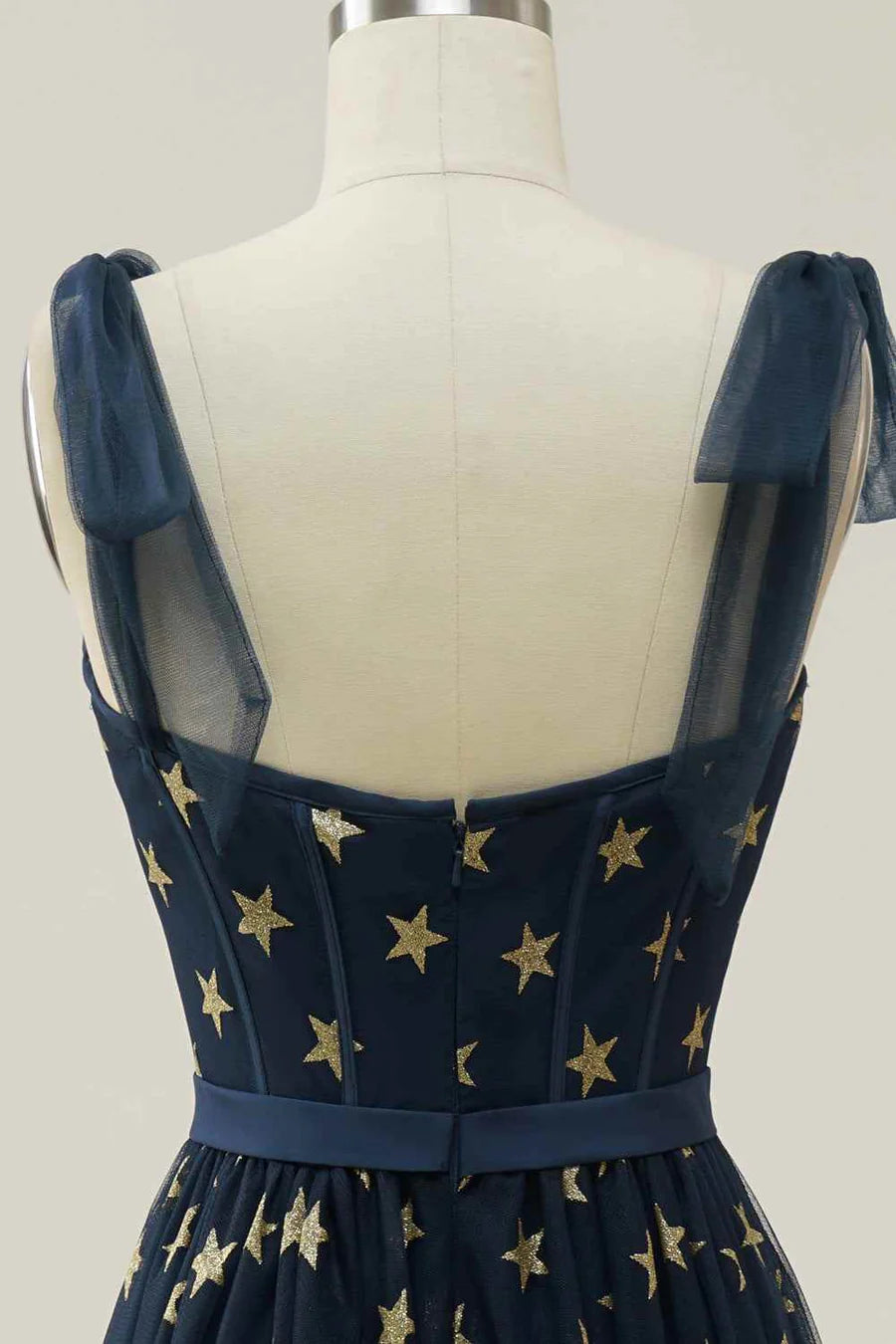 A-line Tied Strap Tulle Applique Knee Length Prom Dress - US 2 / UK 6 / EU 32