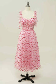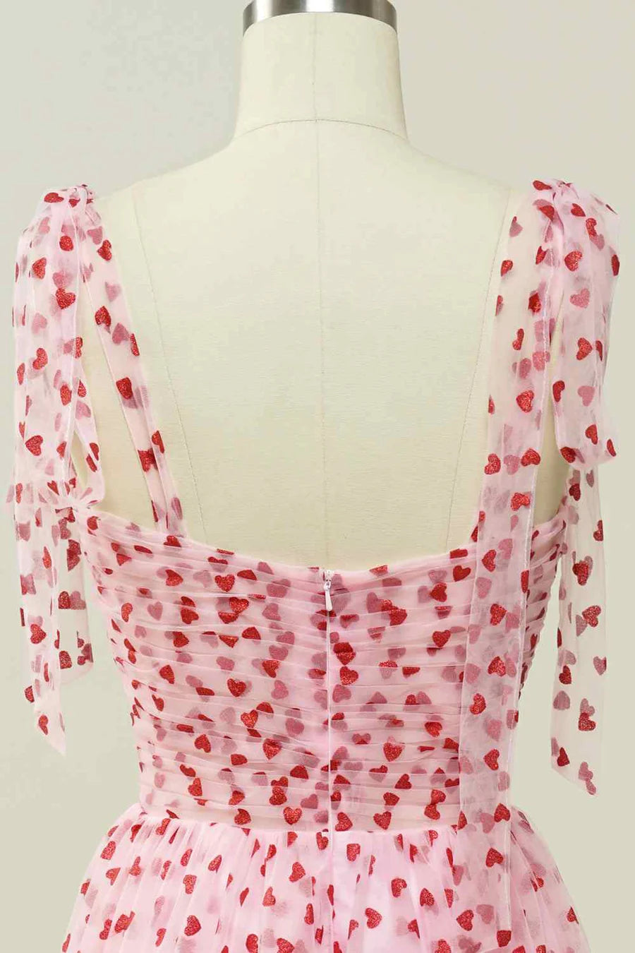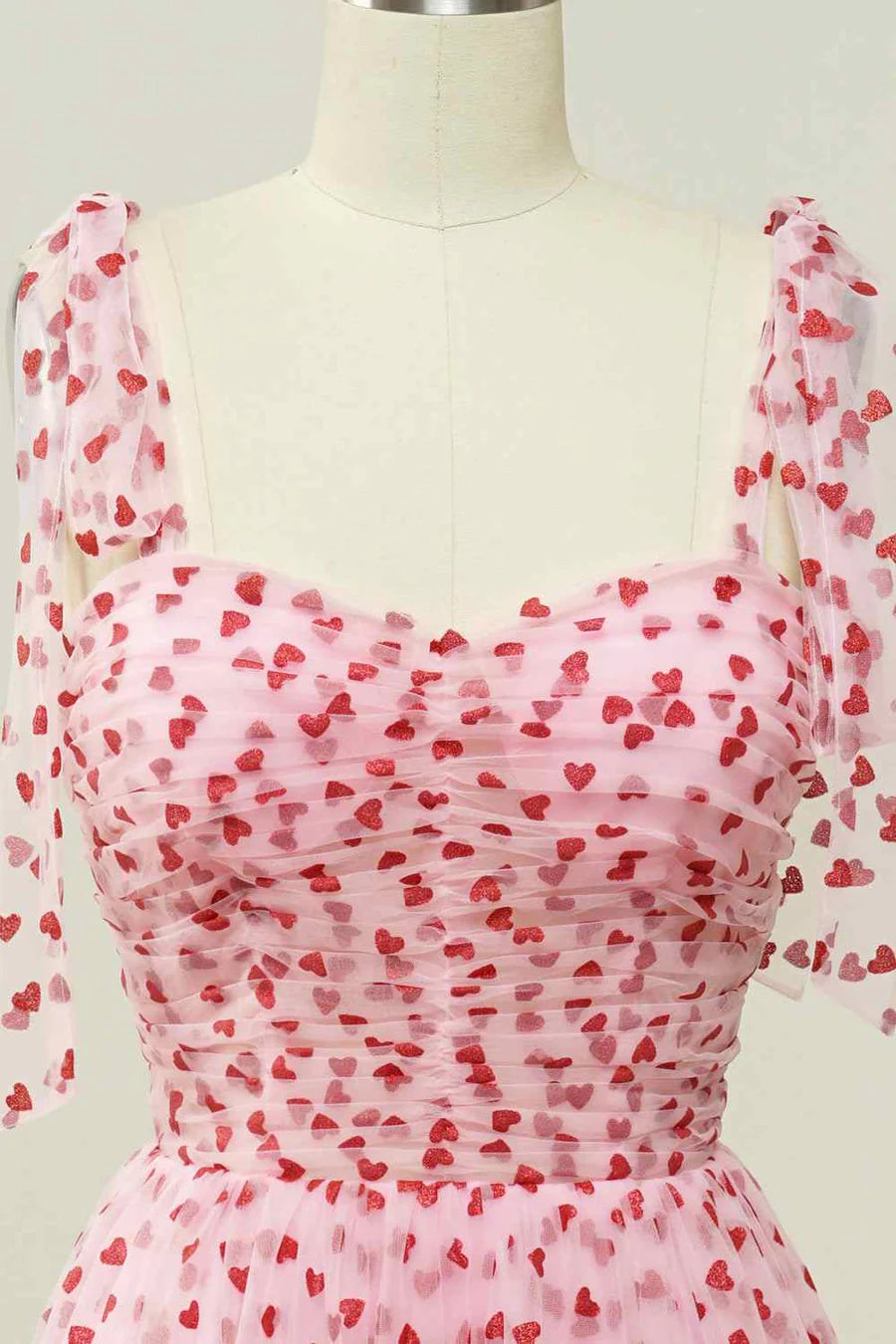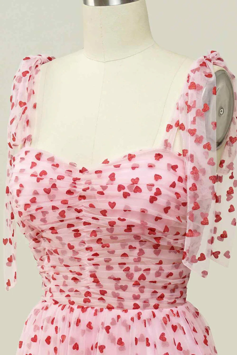A-line Tied Straps Pleated Tulle Ankle Length Prom Dress