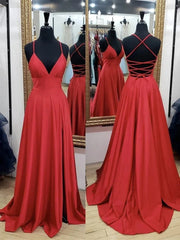 A-line V Neck Backless Formal Evening Dresses Long Prom Dresses