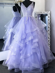 A-line V Neck Lace Long Prom Gown Formal Evening Party Dresses Prom Dresses