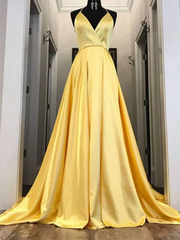A-line V Neck Satin Long Prom Dress Evening Dress Formal Evening Dress
