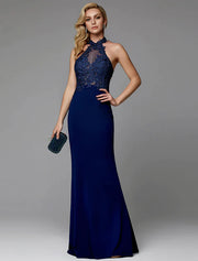 Chic Sheath / Column Cut Out  Floor Length Sleeveless Halter Crisscross Back with Appliques Prom Dresses