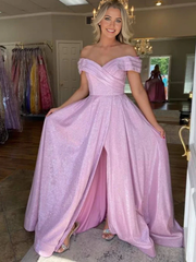 Long Off Shoulder Prom Dresses with Leg Slit Long Formal Evening Graduation Dresses