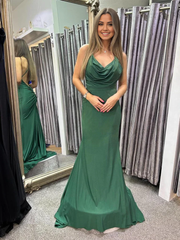 Mermaid Backless Satin Long Prom Dresses Long Formal Evening Dresses