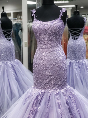 Mermaid Lace Tulle Backless Long Prom Dresses Long Formal Evening Dresses